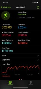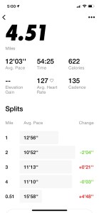 Thursday was another interval speed day. 6 x 200 is what NRC (Nike Run Club) ordered. It’s a bit tough trying to do such short intervals on the treadmill, but I still made it work. I was super winded on my last 200. I did push myself a little harder though. Instead of doing 7 mph with 1% grade, I started with 7.2 mph, which I had to bump back to 7 mph at interval 4. Also did a 1/4 mile walk to recover. As you will see with all of my runs, I started with my NTC warm-up.