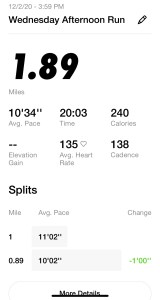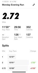 Started off my week with a lot of motivation, so I tackled my 2.5 mi endurance run. I did my NTC Wake-Up Warm-Up to get loose, then did my run. Not sure why, but the timer on the treadmill seems to not work correctly. Fortunately the distance is fine, since I measured it. Therefore, I am using the stopwatch function on my phone for an easy time tracking visual. I really don’t understand why Nike cannot allow the watch app and the phone app to work together. Regardless, felt really good after my run.