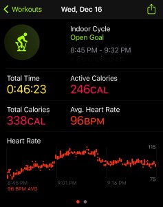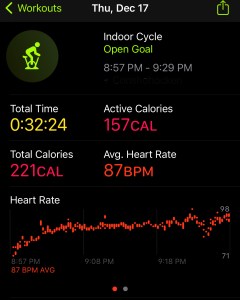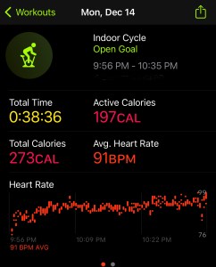 As I mentioned, this was a rough day and I did not start my workout until 10pm. With being so tired, I hopped on my bike and got in a 38 minute ride, which was enough to close my Apple Rings.