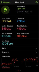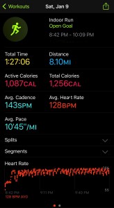 I did my NTC warm-up and proceeded to do my long run. I loaded up a movie, got my MultiTimer app ready, and off I went. My usual 5 minute walk to start actually felt too long, which was a first. As a matter of fact, very few times has it ever felt like it was enough. I started off trying to track my segments, but with how long the run was going to be, I figured I would just focus on the run/walk as my MutliTimer app alerted me. I was definitely struggling a bit for my last mile, but overall I felt really good. My HR didn’t go above 146, which although a bit higher than I would like for my long run, still decent enough. I went at my usual 6 mph speed for my 2 minute run intervals, and 3 mph for my 30 second walk intervals. Aside from one point where I was a little too focused on my movie and not the timer, I missed one interval. However, I felt fine even though I went well over the 2 minutes.