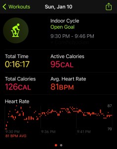 Next up I figured I would do a little core work, so I tried out another 10 minute workout called Absolute Beginner Core with Sam, which had Throwback Hits. Sadly, I didn’t really get to do this workout because I was having all sorts of issues with Apple TV connecting with my Apple Watch. It was already late, and I didn’t want to waste time troubleshooting, so i just hopped on my trainer for about 16 minutes. The yoga plus the relaxed trainer ride really helped loosen up my legs and lower back. I think I’ll be using my iPad again though next time I do more Fitness+ workouts.