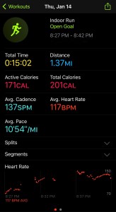 I have noticed that my accuracy overall is much better with Apple’s native fitness app vs. Nike’s app. Both still don’t allow for calibration like I could do on my Garmin, but that’s not a deal breaker for me right now. Once the weather gets warmer I plan on doing some outside runs and walks with GPS so it will improve the indoor accuracy for both Apple’s native fitness app and Nike’s app. I will eventually need that accuracy for metrics, but I am still a long way away from that.