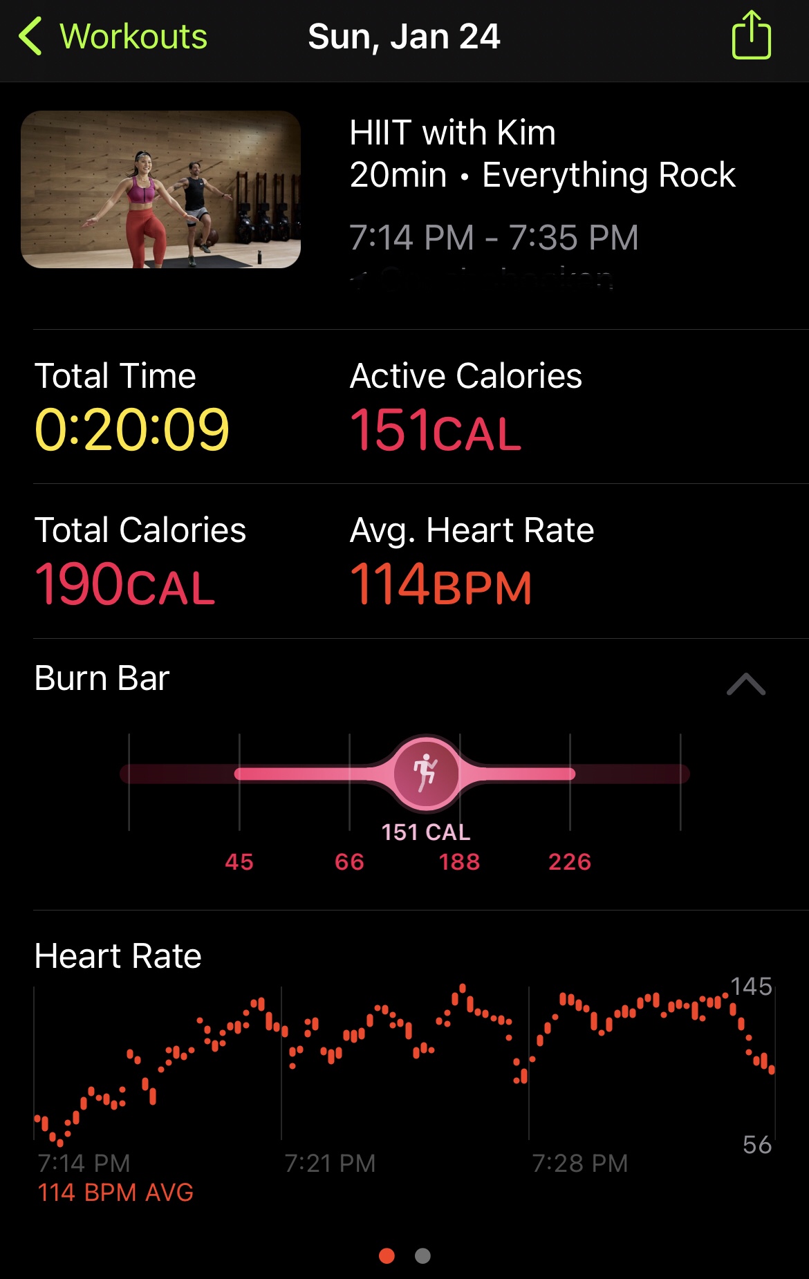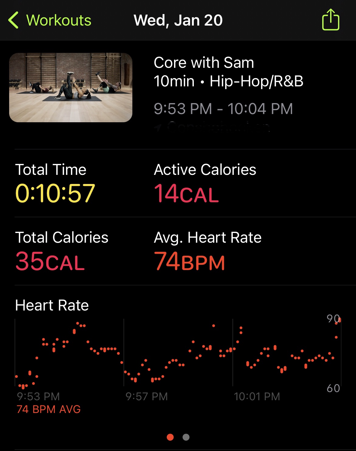 After my ride I was a little sore and I wanted to try out more Fitness+ workouts. I went with Core with Sam, a 10 minute workout. Overall this was pretty fun and for a 10 minute workout, it definitely helped get me loose. Of course my watch got its act together for this workout, so the HR was definitely on point. I still might try an HR strap at some point to compare the different workouts, but that won’t be for a while.