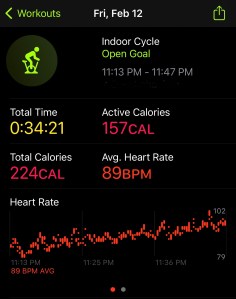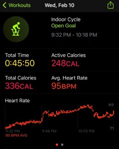 To finish out my workouts since I had a bit more energy than I expected, I hopped on my bike for just over 15 minutes, going at a moderate pace with higher resistance. I probably could have gone a bit longer, but I didn’t want to overdo it. Getting in that variety of workouts felt really great and I am hoping I can get more days like that in the future.
