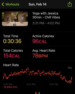 After that did some yoga. I went with Apple Fitness+ and chose Yoga with Jessica for 30 minutes. This ended up being a bit more challenging than I expected. However, I felt so great after I was done. Yoga is so amazing and one day I will get a yoga routine down.