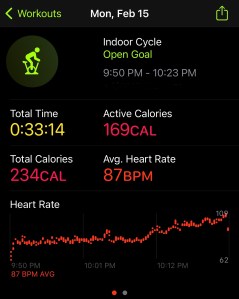 For my rest day I wanted to do some strength training and some cycling. I did my NTC warm-up and then did my same basic strength routine that I did last week. Everything from the warm-up to each set in the strength session felt like an epic task. It was already about 11pm so I called it a night.