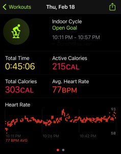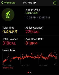 Another super late work day, so instead of my planned NTC workout I did a trainer ride again. As usual, I went for 45 minutes and watched some fun shows. I am definitely a bit nervous for my long run with not getting much running in this week.